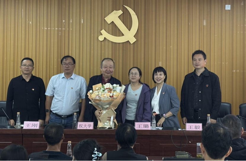 王刚代表公司致辞,他高度肯定权大学副教授作为公司发展的参与者、建设者,为团队建设与人才培养打下的坚实基础,对其长期以来的辛勤付出致以诚挚感谢,并祝愿他荣休后生活安康、乐享新篇。