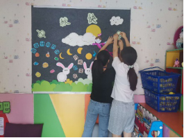 在见习活动过程中,同学们不仅对幼儿和教师的日常活动有了更深入的了解,还亲身参与幼儿的活动与教学中,帮助幼儿整理衣物、维持纪律等,亲身体验幼儿园的生活,同时,我们同学还参与幼儿园的主题墙活动设计与制作等等。