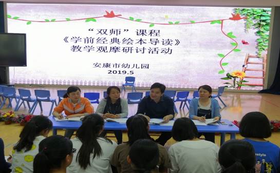 2019年5月21日下午,学前专业教师王丽娟老师率领伟德体育伟德体育官方网站18级学前教育单招班50位员工,在安康市幼儿园进行了第六次校外绘本示范教学活动。安康市幼儿园谌敦平园长、刘小燕副园长、教研主任王昕及幼几园多位骨干教师参加双师课程活动。