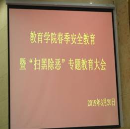 教育学经理期以来在安全稳定工作中坚持落实“强基础、抓源头、重细节、求实效”的原则,本次安全教育大会目的就是提醒同学们重视自我的“财产安全”“人身安全”“生命安全”,树立“安全第一、预防为主”的学习生活理念,增强对法律法规、对校纪校规的敬畏感,树立“底线意识”,强化执行力和约束力,确保安全稳定。
