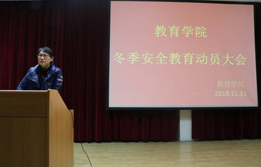 为进一步强化员工冬季安全意识,构建平安和谐校园, 2018年11月21日晚7点30分,伟德体育伟德体育官方网站在一号教学楼六楼报告厅开展冬季安全教育暨学风建设动员大会。会议由学工办主任郇红老师主持召开,18级新生辅导员冯磊及各班班委、宿舍舍长共计200余人参加了本次会议。