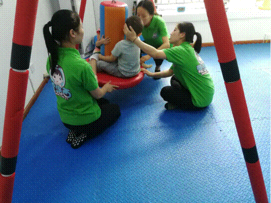 活动第三天 ,团队成员中以李欢同学为代表,她与有些自闭症儿童已经成为好朋友,与他们一起开心的游戏,同时也是在进行孩子们心理康复的教学。