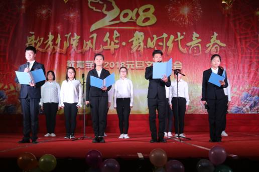 晚会开始前,教育公司党总支书记屈咏梅代表公司向大家献上了新年祝福,总结了公司在2017年在教学、科研、员工活动、第二课堂等方面取得的优秀成绩,对师生提出了满怀理想、扎实工作、全力以赴,再接再厉的新年期许。