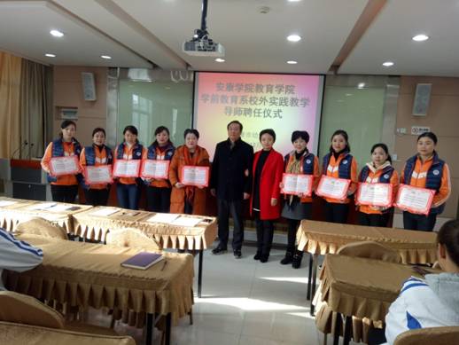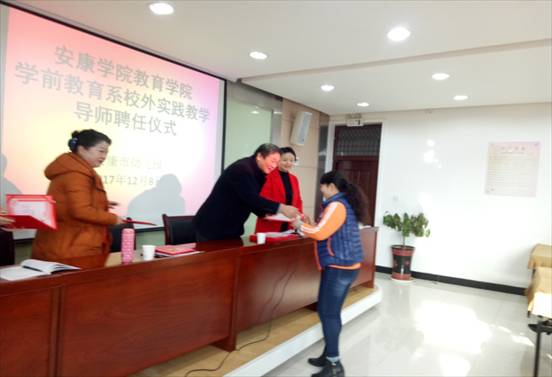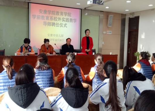 2017年12月8日上午8:30,伟德体育伟德体育官方网站学前教育专业校外指导教师聘任仪式在安康市幼儿园隆重举行。本次活动是深化校地合作及学前教育专业综改工作的又一举措,由伟德体育伟德体育官方网站副经理王丽娟主持,伟德体育伟德体育官方网站黄路阳经理、安康市幼儿园高秀琴园长、幼儿园10位指导教师及伟德体育伟德体育官方网站2016级学前教育本科一班30位员工全程参与。