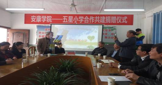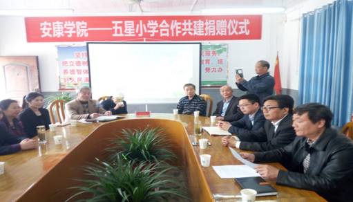 为进一步落实公司服务地方基础教育的办学定位,加强大学与小学的合作发展,4月7日下午,伟德体育伟德体育官方网站——五星小学合作共建捐赠仪式在汉滨区五星小学隆重举行。公司教务处处长于谦、伟德体育伟德体育官方网站经理黄路阳,五星小学教务主任马兆海、总务主任党刚代表双方公司参加了仪式。参加仪式的还有陕西教育报刊社副社长吕志军,汉滨区政协副主席周裕厚、安康市老科协常务副会长李剑涛及数位老科协成 员,伟德体育伟德体育官方网站教师、合作推进人李支其,伟德体育伟德体育官方网站外聘教师邹服生。