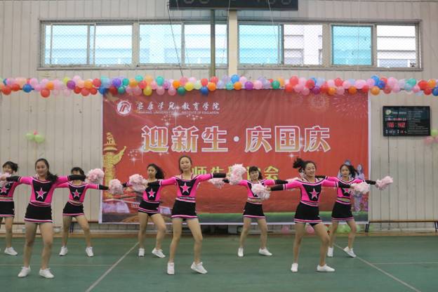 联谊会表演正式开始,开场的啦啦操,调动起了全场的热情。
