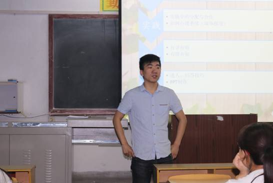活动伊始,12级王寰晨为大家介绍了参加社会暑期实践活动应该注意的问题。他在选题、实践和活动总结方面都做了讲述,并着重强调了在暑期活动开始之时一定要注意选题,要关注社会热点,选题要新颖有创意,要将在活动期间做的材料完整保存,为最后的总结做准备。接下来,其他的几位学长,学姐也分别将他们参加活动时的情况做了讲述,并为今年同学们提出建议。最后,向大一同学展示了去年暑期社会实践活动答辩的PPT,情景再现了当时的答辩现场。