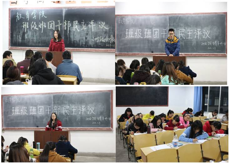 评议中,各班班团干部就各自担负的班级工作及自己学习、生活情况,向同学进行了汇报。同学们根据班委的总结及其一学期的工作,从学风、品德、能力、团队、作风、自律等6个方面填写了民主评议表,并提出自己的建议和意见。广大同学认为本次活动很有意义,大家能够有机会能够发表自己的意见;通过评议活动,不仅使班级民主管理的氛围加强了,更能使班委清楚地认识自己,明晰责任,查找不足,更好地为同学们服务。