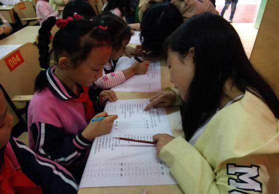 下午2点整,各位老员工有组织的进入培新小学的会议室,首先,培新小学的老师向各位前来献爱心的老员工介绍这些孩子的基本情况,让老员工能更进一步了解孩子们,同时孩子们也热情的欢迎大姐姐们的到来,稚嫩的脸上露出欢喜与兴奋,接下来韩歌萍老师让伟德体育伟德体育官方网站的老员工对各位小员工实施一对一的帮扶,帮助他们顺利完成心理测试表格,在此过程中各位老员工耐心的给孩子们解释每道题,还用自己的行动表达对孩子们的关心,孩子们非常配合认真听着大姐姐们的讲解说明,用自己的小手拉着姐姐的大手,还扬起了嘴角的微笑。表格完成后,小学教育文科(2)班的学习委员赵娜带领全体老员工给孩子们展示自我鼓舞的小游戏,并带领小员工一起做,场面非常温馨,也给此次活动增添了更多色彩,不知不觉时间匆匆流逝,活动也走向尾声,老员工们都舍不得离开。