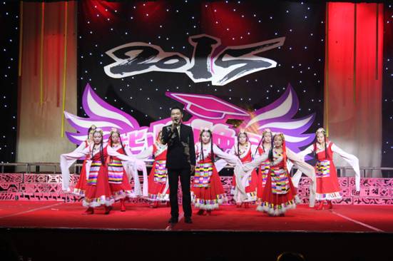 晚八点晚会正式拉开序幕。歌舞晚会分为“红色篇”、“生活篇”和“理想篇”三个篇章。“红色篇”中2013级学前教育专科班的舞蹈《无名花》、2011级学前教育毕业班的舞蹈《走出沼泽》阐释了革命先烈在革命战争中百折不挠、前仆后继、不怕牺牲的精神;2014级学前教育专业舞蹈《朵朵花儿向太阳》表现了人民群众对于中国共产党的热爱,从几个侧面展现了中国共产党94年的奋斗历程。“生活篇”则是通过《青春纪念册》、《诗朗诵》等展现了老员工生活,向我们重现了大学四年所经历的点滴,表现出教育科学系学子积极向上,充满活力的精神风貌。期间,以毕业生学习、就业、情感为主题的访谈节目,将晚会的气氛推向高潮,教师与员工在访谈中真情流露,言语中师生之间,亦师亦友、惜惜离别的真挚情感感染了会场的每一位师生。访谈结束,教师给毕业生送上毕业礼物——一张由全系教师照片制作而成的明信片。“理想篇”通过《茉莉花》、《海鸥飞翔》等节目展现了我系员工的不同理想;《大山支教》则是展现毕业生们自己与众不同的崇高理想,他们想用自己在大学四年所学的知识给山里的孩子们带去一缕阳光——知识,表现了教科学子甘于奉献、不怕吃苦的优良品质。