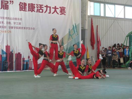 预赛中,竞争异常激烈。教科系以一身红色为主的服装舞动出场,动作充满活力,引起阵阵掌声与欢呼声,加油声此起彼伏。伴着鼓舞声,他们更加努力的跳动,动作标准,微笑时刻挂嘴边,最终,以健美操第一,拉拉操第二为预赛划上了完美的句号。