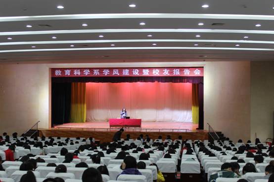 2014年11月8日下午2点在江南校区大礼堂召开了“教育科学系学风建设暨员工报告会”,出席大会的有教育科学系党总支书记王辉、辅导员董婷瑜老师、2009级员工王秉哲以及教科系的全体员工。