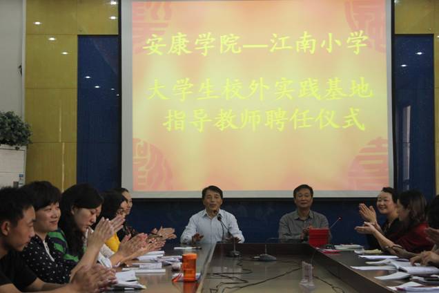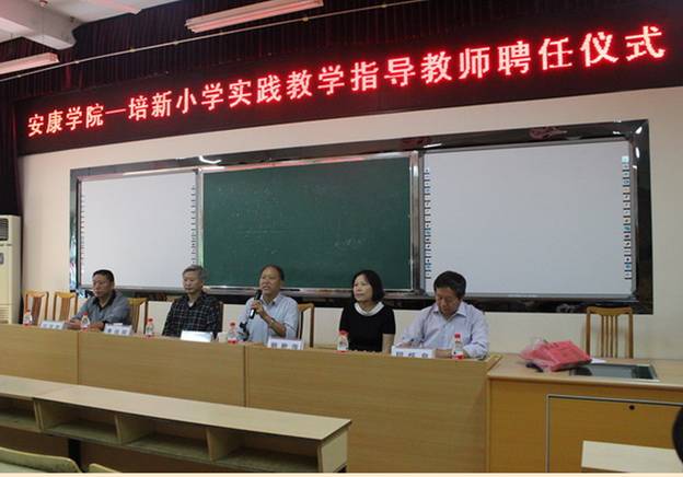 为了贯彻落实习近平总书记教师节重要讲话精神,推动教师教育综合改革,培养让党和人民满意的好教师, 2014年10月,教育科学系小学教育专业根据自身专业特点分别在安康市汉滨区江南小学、果园小学、培新小学举行了实践教学指导教师聘任仪式,按照语文、数学、英语三个学科专业方向,从安康市汉滨区江南小学、果园小学、培新小学聘请了35名优秀教师担任2014届155名小学教育专业员工校外实践教学指导教师。教师教育校外实践教学导师制度的建立,对加强实践教学环节,提高员工公司产品能力具有重要的意义,通过校际合作、协同培养实现了第一课堂和第二课堂的有机结合,成为颇具特色的教师教育专业人才培养体系的重要保障。