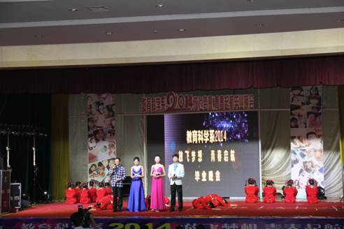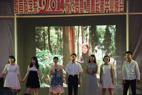 首先,教育科学系党总支书记王辉老师致开幕词,2014届毕业生即将毕业,希望本次晚会能给他们的老员工生活留下一段难忘的记忆,无论将来身在何方,都能永记母校的培育之恩。晚会共分四个篇章:“春、华、秋、实”,展现了员工大学四年的学习、生活历程,从青涩到成熟的成长经历,从相聚到不舍的离别之情。舞蹈《遥远的我们》拉开了晚会的序幕,教官们的《倒功操》展示了新生入校时军训的场景,引起了同学们的共鸣。舞蹈、小品、歌唱等节目都以其独特的演绎技展示了员工们在大学期间的学习成果。诗朗诵《我们不说再见》表达了对于母校的感恩之情、不舍之情,全场弥漫着满满的留恋。公司第一位职工,也上台表演了歌曲“长亭送别”为我系毕业生送上诚挚的祝福。