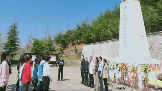 在纪念碑前,汉阴县档案局吴登恩向员工们讲述了陕南人民抗日第一军的革命事迹,重温了中国共产党在安康地区开展革命斗争的历程,让同学们接受了一次生动的爱国主义教育和革命传统教育。教育公司党总支副书记赵斌结合此次教育活动,为员工党员、入党考察对象上了一堂党课,向大家进一步明确学习党史教育的目的和重要意义,要求员工党员通过学习党史传承红色精神、红色基因、红色传统,深刻领悟党的理论创新,进一步强化信仰、信念、信心。