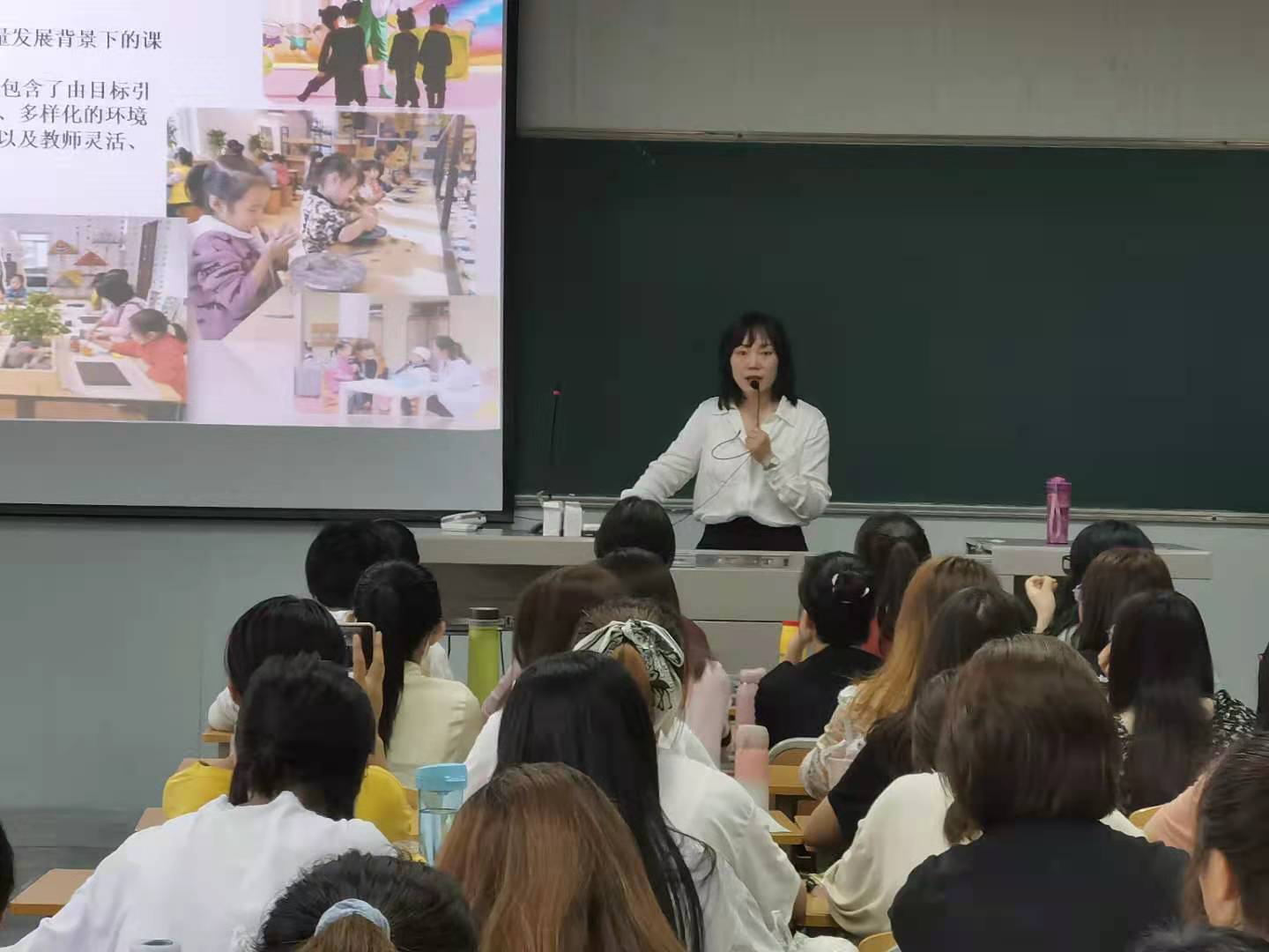 陈园长结合自己的从教历程及本园课程建设成果出发从课程的意义、课程的定义、课程发展回顾、课程案例四个方面对幼儿园课程进行了介绍。