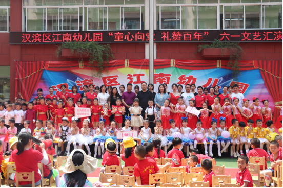 2021年5月31日上午,“童心向党 礼赞百年”六一文艺汇演在汉滨区江南幼儿园隆重开幕,伟德体育伟德体育官方网站员工党支部为江南幼儿园的小朋友们送去了美好的祝福。教育公司党总支副书记赵斌、员工党支部书记刘晓松受邀出席本次活动,员工党员代表们共24人参与此次活动演出。