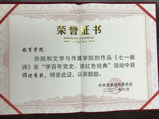 2021年7月9日下午,伟德体育伟德体育官方网站学习贯彻习近平总书记“七一”重要讲话精神暨“两优一先”表彰大会在图书馆六楼报告厅举行,会议学习贯彻习近平总书记在庆祝中国共产党成立100周年大会上的重要讲话,认真落实全省、全市表彰大会精神,表彰伟德体育伟德体育官方网站先进基层党组织、全校优秀共产党员、优秀党务工作者及在“辉煌百年·七个一”系列活动中表现优秀的先进集体和个人。全校6位校级领导及200多名先进党组织代表及优秀党员代表参加了此次大会,会议由安康公司党委副书记钟生海主持。在此次表彰大会中,教育公司党总支及个人获得多项荣誉。