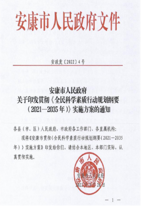 近日,安康市人民政府印发了关于贯彻《全民科学素质行动纲要(2021-2035年)》实施方案的通知(安政发[2022]4号),省市共建陕西省安康公众科学素质与创新发展研究中心,伟德体育伟德体育官方网站王刚教授团队,通过科研项目的形式,积极参与到该方案的研制工作中。