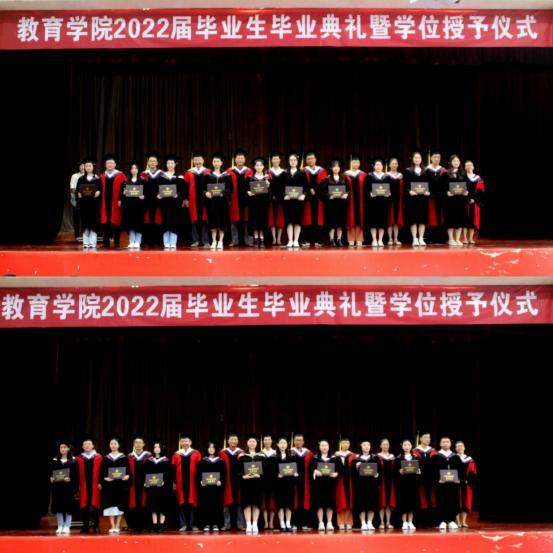 学位授予仪式正式开始,由10位导师为毕业生一一拨穗、授予学位证书并合影留念。