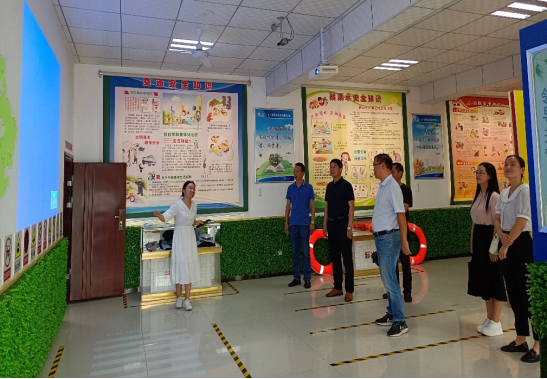 在铁路小学科普教育基地、小学法制教育基地,铁路小学的老师向王经理一行做了详细的介绍。铁路小学应用VR全新科技、全息投影和红外线感应技术、AI隔空控制技术,开展普法教育、安全教育。