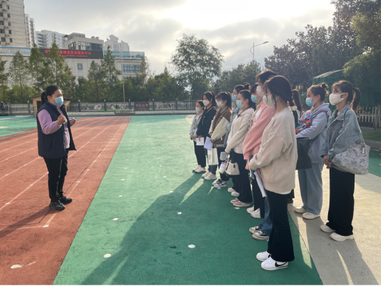 实习工作开始前,园长向大家介绍了园里基本情况已经疫情防控的注意事项,随后负责人邱老师又带着员工们熟悉幼儿园的环境。
