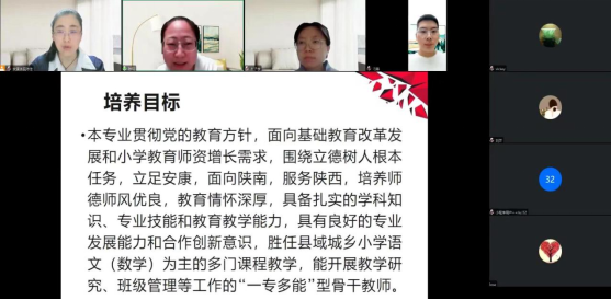 为进一步加快公司小学教育专业发展,完善人才培养方案,提升人才培养质量,伟德体育伟德体育官方网站小学教育专业定于2023年5月13日20:00于腾讯会议召开线上小学教育专业建设指导委员会会议。会议由小学教育系主任陈珂老师主持,由小学教育专业建设委员会成员、小学教育系全体教师参加,并邀请江北小学副董事长张华丽、培新小学副董事长李静、汉滨区教研室语文教研员朱宏、平利师训中心语文教研员吕国文、汉滨小学语文教研组长朱雪梅、安康市第一小学语文教师刘莎、安康市教育局吴晓莉参加会议并对小学教育专业建设提出各自的宝贵建议。