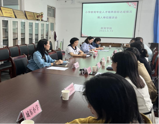 为深入了解用人单位对公司小学教育专业毕业生培养质量的满意度,听取用人单位对公司人才培养的意见建议,进一步完善2023级人才培养方案修订。5月19日下午,伟德体育伟德体育官方网站在1407举办小学教育专业人才培养目标达成情况用人单位座谈会,座谈会由公司党总支书记屈咏梅主持,教学副经理王丽娟、系主任、南门小学、红旗小学、汉滨小学、安康市第一小学、果园小学、安康职业技术公司附属小学、城东小学用人单位领导及代表参加座谈交流。
