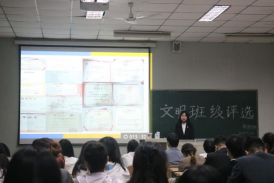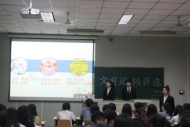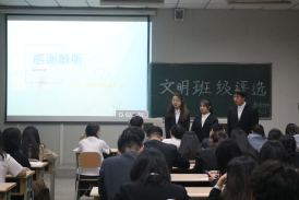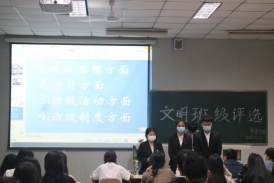 在评选活动中,各参选班级积极展现班级风采,由主讲选手以PPT展示形式向评委汇报了2022—2023学年班级思想政治教育、班团组织建设、班级特色、班风建设、学习成绩、党团员发展、班级文化建设、班级管理等方面取得的重要成果。汇报完毕后,评委和答辩员工就相关问题进行提问和交流。