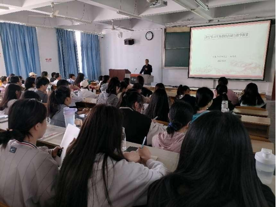 2023年5月11日下午,2020级小学教育文科1班、2班,2022级小学教育专升本1班、2班的同学们在1510教室聆听了一堂生动的双师课。来自安康市第一小学的刘莎老师,公司小学教育系2012级优秀毕业生,以小学语文教师和大师姐的双重身份,从语文教师专业素养的角度出发,结合自己的工作经历给未来的小学教师播种了一颗从师从教的种子。自此拉开了本学期“小学语文课程与教学”双师教学的序幕。