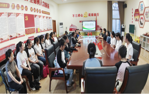 首先,幼儿园史敏园长对我系的实习生表示热烈的欢迎,并从园所发展、办园理念、规章制度、园所环境、团队队伍及实习的具体安排和要求做了详细的介绍。幼儿园将从班级管理、一日活动组织与实施,五大领域教学方法等全方位的为实习生搭建学习平台。实习生们与幼儿园老师跟班学习,希望在有限的实习期间努力提高专业素养,丰富自身实践经验,学有所用、学有所长,学有所获。
