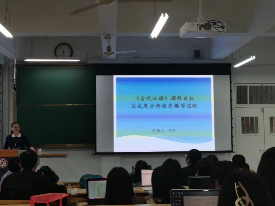 本次汇报由两部分组成。第一,刘铁副处长从教师实践困扰出发,就教师在撰写课程达成度目标分析报告的难点、疑点进行一一解答。第二,伟德体育伟德体育官方网站史丰教授从《古代汉语》课程出发,分享了自己撰写过程与心得。课程目标达成度的本质在于“确定细化目标”、“分类综合评价”、“弱项达成为要”,解决课程目标不明、一揽子评价的缺陷。与会教师纷纷感触颇深。会议氛围融洽,氛围浓厚。