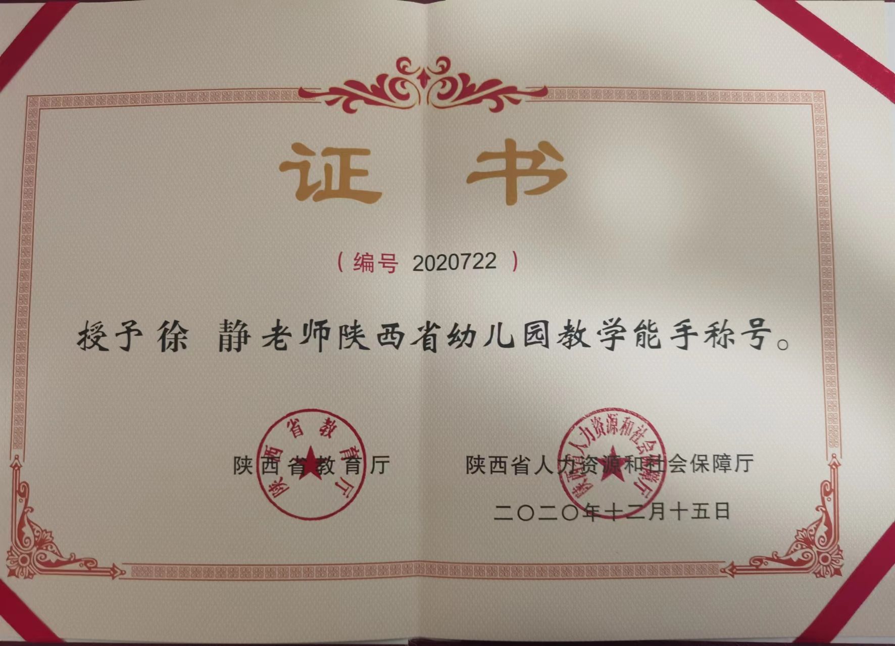 经过多年的努力和拼搏,徐静已经成为了幼儿园的骨干教师,汉滨区学科带头人培养对象,陕西省教学能手。多次参加省、市、区组织的学前公司产品比赛,并获得了优异的成绩。她还参与了多项省、市、区级课题研究。