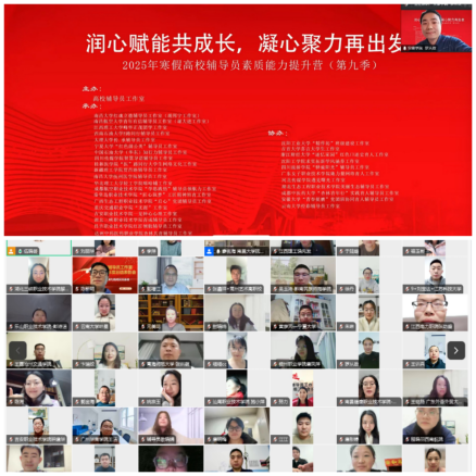 为深入实施立德树人工程,全面提升高校辅导员队伍素质能力,切实推动高校思想政治工作高质量发展;2025年1月18日、1月25日,由高校辅导员工作室主办的“高校辅导员素质能力提升营(第九季)”顺利举行,伟德体育伟德体育官方网站组织全体辅导员通过线上参加培训。