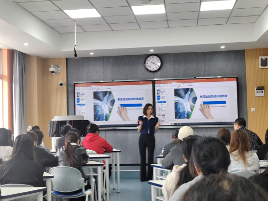 宣讲会上,达达集团宏雅教育张亚琼园长对公司性质、办学规模、企业历史、集团文化、工作环境等基本情况进行简要展示,详细介绍了员工素质要求、职业晋升、教职工福利待遇、招聘岗位、校企合作等。互动环节,同学们就密切关注的学前职业发展趋势、幼儿园转型发展、儿童成长陪伴师的职业发展与市场需求、应聘流程等问题与招聘负责人交流答疑。罗从政对达达集团宏雅教育前来招聘表达感谢,鼓励同学们珍惜机会做好准备、积极应聘勇于尝试、拓宽视野更新思维,引导同学们树立科学合理的就业观念,找准职业定位,先就业再择业。