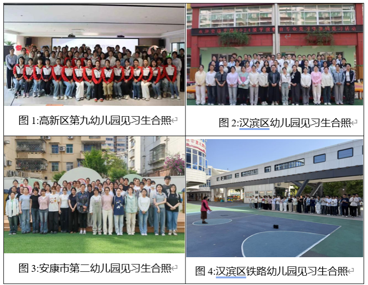 为进一步加强员工对幼儿教育实践工作的理解、积累宝贵教育工作经验,2025年4月14日至4月18日,来自2023级学前教育本科、2024级学前教育本科及2024级学前教育专升本专业的360名同学,在老师的带领下,前往安康市的多所幼儿园开展为期一周的教育见习活动。