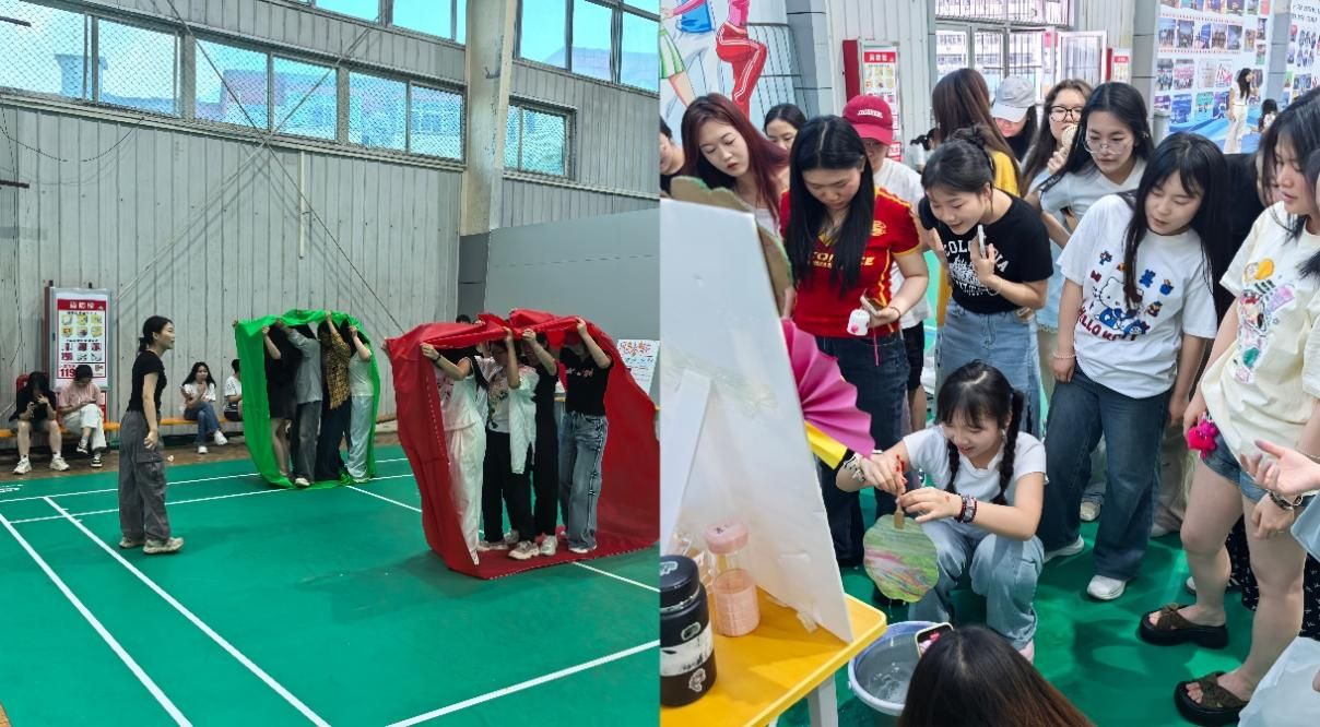 据悉,本次活动精心设计了多个趣味项目。在“夸夸”能量补给站,同学们通过相互夸赞、投掷沙包,提升自信与团队凝聚力;“1人E人大作战”中,大家借助非语言交流传递信息,增强团队默契;“风火轮冲冲冲”让同学们在协作推动履带前进的过程中,感受集体力量;“愿望不‘球’散,气球大作战”引导同学们写下愿望,思考未来规划;漆扇制作环节,同学们用色彩创作,完成情绪释放与心灵探索。