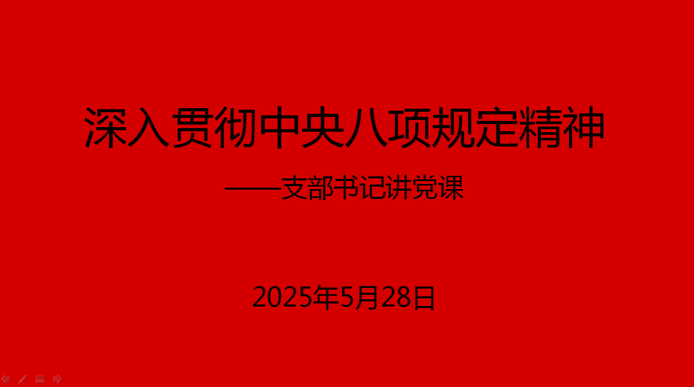 5月28日,伟德体育伟德体育官方网站教工第一党支部支部书记宋燕宇在1407会议室以“深入贯彻中央八项规定精神”为主题开展专题党课,教工第一党支部全体党员参加。
