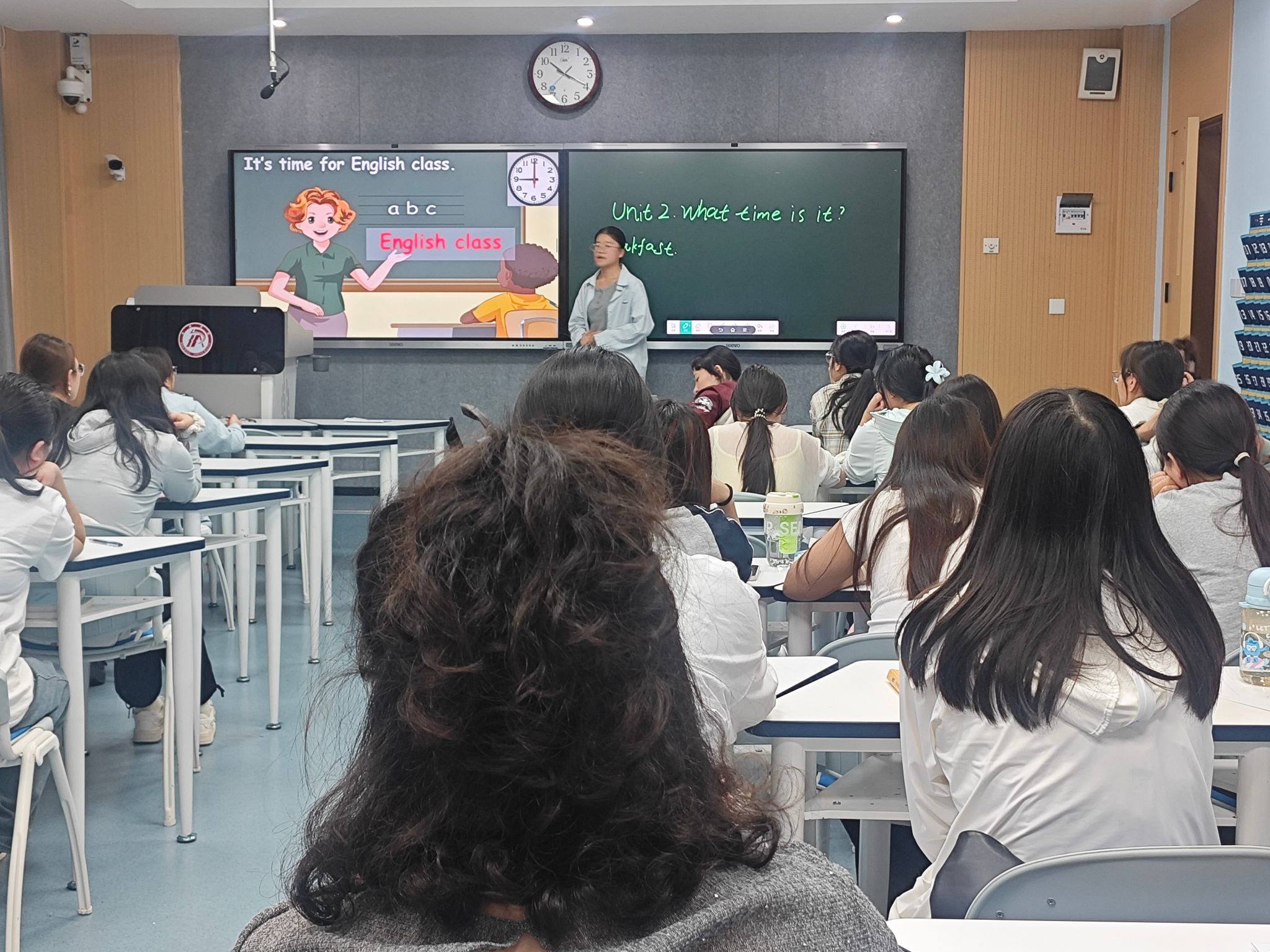 讲座伊始,由小学教育专业员工朱瑞珍、宋妍、任妍冰三位同学分别作词汇课、读写课试讲,随后吴德娇老师针对同学们的试讲展示提出改进建议,同时根据员工试讲呈现中存在的问题,着重从语言规范、环节齐全、时间合理三方面给各位同学提出高效组织课堂建议。吴德娇老师以2024版PEP教材三年级下册Unit 1 Meeting new people Read andWrite 为例呈现如何进行有效课堂设计及组织。