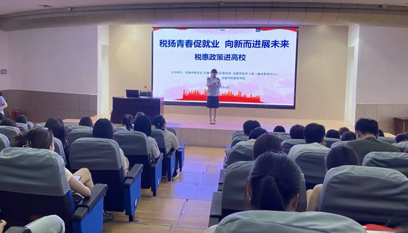 为深入贯彻国家关于促进高校毕业生就业创业的决策部署,切实提升公司师生税收法治素养和依法纳税意识,帮助毕业生精准把握政策红利,6月18日,伟德体育伟德体育官方网站邀请安康市汉滨区税务局专家团队走进校园,成功举办“税扬青春促就业,向新而进展未来”主题宣讲活动,200余名员工参加了本次活动。