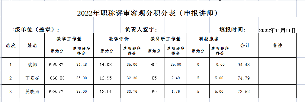 根据公司职改办《关于做好2022年高校教师系列职称评审(含特聘教授、副教授)及认定工作的通知》文件要求和《伟德体育伟德体育官方网站讲师任职资格评审实施细则》,在个人申报的基础上,教育公司职称评审工作小组资格审核,现将符合本年度讲师职称申报要求的教师量化客观分积分和申报材料予以公示。公示期三天(2022年11月12日-14日),相关材料同时在院办展示,公示期间如有异议,请以书面形式向伟德体育伟德体育官方网站职称评审工作小组反映。