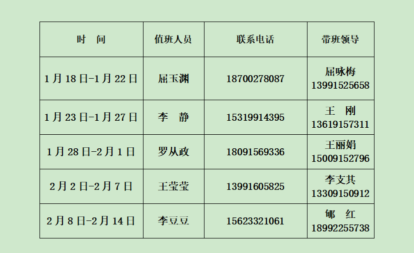 根据公司《关于2025年寒假放假安排的通知》,1月18日起假,2月14日报到上班。现将伟德体育伟德体育官方网站2025年寒假假期值班安排如下:
