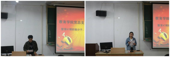 第一项由员工党支部书记董婷瑜宣读伟德体育伟德体育官方网站第47期入党积极分子、第18期发展对象名单;第二项分别由第47期入党积极分子代表蒙状、18期发展对象代表杨紫薇发言,他们表达了自己坚定的入党动机和对本次培训机会的珍惜。蒙状同学提出的三个“站出来”和杨紫薇用实际行动践行信念的表态得到了大家的一致赞同。