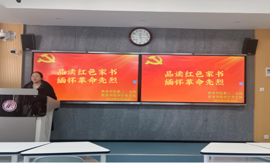活动中,党员师生分别将《在朝鲜战争给母亲的信》(黄继光)、《王尔琢致父母》(王尔琢)、《我们的遗志自有未死的同志来完成》(陈觉)等承载着革命历史和红色精神的珍贵家书用最真挚的感情诵读出来。一封封感人肺腑的红色家书,一段段刻骨铭心的感人事迹,通过党员们的诵读,仿佛向历史回眸,感受到“信仰、信念、信守、信心”的强大精神力量,感受到革命先烈们炽热的理想信念和赤诚的家国情怀。