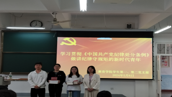 为进一步落实公司党发(2024)36号文件《中共伟德体育伟德体育官方网站委员会关于在全校开展党纪学习教育的工作方案》及《教育公司党总支委员会关于在全院开展党纪学习教育的工作方案》文件精神,教育引导员工党员学纪、知纪、明纪、守纪,强化党支部纪律建设成效。2024年5月6日,伟德体育伟德体育官方网站员工第一、第二党支部联合开展党纪学习教育暨支部书记讲党课。伟德体育伟德体育官方网站员工第一、第二党支部全体党员参加活动,会议由员工第一党支部书记唐丹主持。