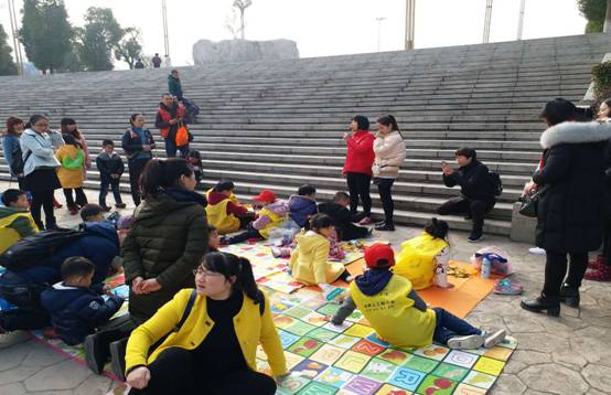 刚刚来到公园,大雾还未完全褪去,虽在阳光下,却还有阵阵寒意,可是小天使们一点都不在意,他们快乐的拼着爬行垫、你追我赶的玩耍着。等到大家都到齐了,我们的活动开始了。