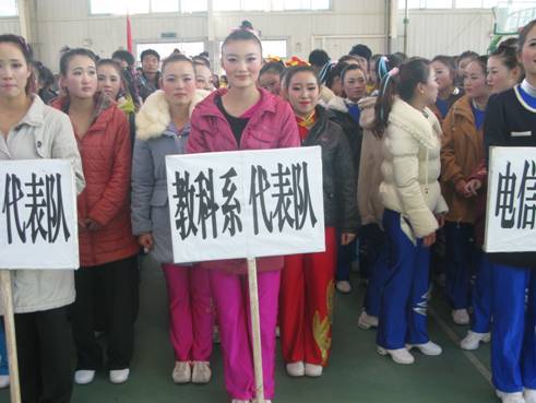 由来自全校十二个院系的16支规定套路参赛队和11支自编套路参赛队依次登台表演。队员们以精湛的技艺,默契的配合,层次万千的队形,活力四射的舞姿,明快奔放的动作博得了现场观众的掌声、喝彩声和欢呼声。在第二轮自编套路比赛中,教科系代表队,以其丰富的面部表情,青春靓丽的形象,激情四射的舞姿让现场的气氛开始沸腾,观众的掌声,加油声,呐喊声一阵高过一阵,将本次比赛带入了新的高潮。最终,我系获自编套路一等奖、规定套路二等奖的优异成绩,刘媛煜同学被评为“明星运动员”。