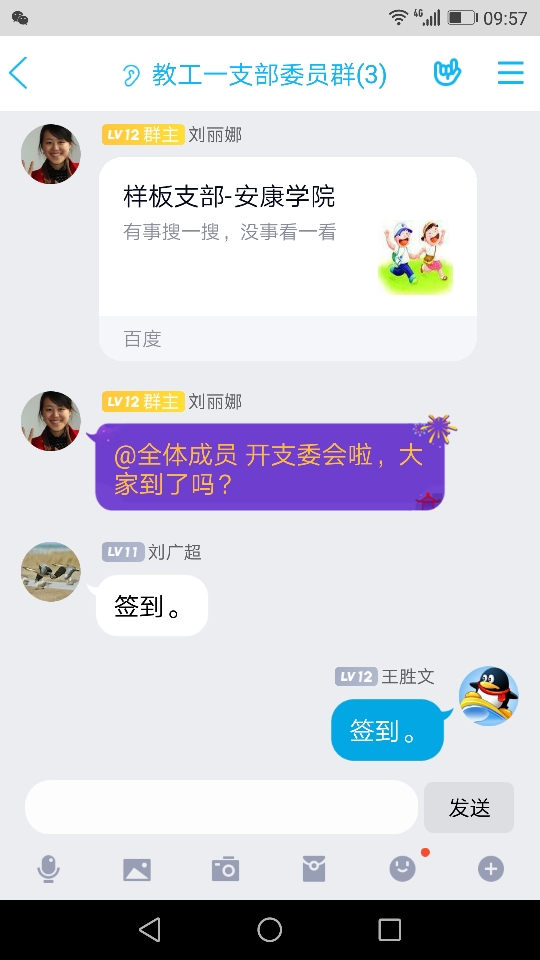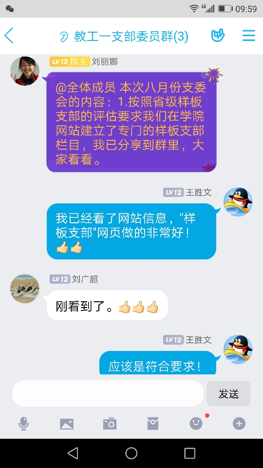2020年8月17日(星期一)上午10点,伟德体育伟德体育官方网站教工一支部在QQ群召开了线上支委工作会议,会议由支部书记刘丽娜主持,刘广超,王胜文参加了本次会议。会议主要有两项工作:1.陕西省党建双创“样板支部”整改方案的落实情况,主要是新媒体的整改落实,。此项工作已经落实到位,在伟德体育伟德体育官方网站网站首页建设一级栏目,进一步完善了教工一支部在“样板支部”建设过程中的相关内容,各项规章制度,开展的党建+X主题党日活动等;2. 接公司党总支通知,按照“以案促改”工作方案要求,公司党总支安排于8月18日(本周周二)晚上7:30开展一次集中学习,参加人员:1.中心组全体成员;2.全体党员(教工一支部、教工二支部)。由刘广超同志在教工一支部群里进行提醒,由王胜文同志在安康智慧党建工作安排栏目下发正式通知,要求支部全体党员按时参加。本次集体学习通过钉钉群进行线上学习和交流活动。