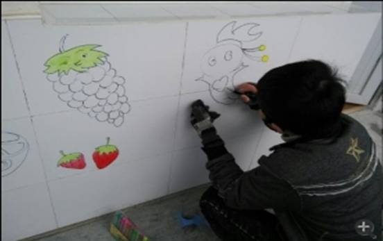 在实践活动中,每位同学自己测量场地,设计图案,规划图纸。同学们说:实践操作起来虽然很辛苦,但是却学到 了平时课堂上学不到的东西,很庆幸的是能有这次机会。