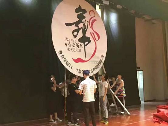 早上十点,伟德体育伟德体育官方网站的同学们早早就来到了大礼堂开始舞台搭建和会场布置,吹气球、铺地毯、清理会场垃圾……每一个微小的细节都展示了同学们的细心和用心,团结一致的教院学子努力把演出前的每一个步骤诠释到完美。